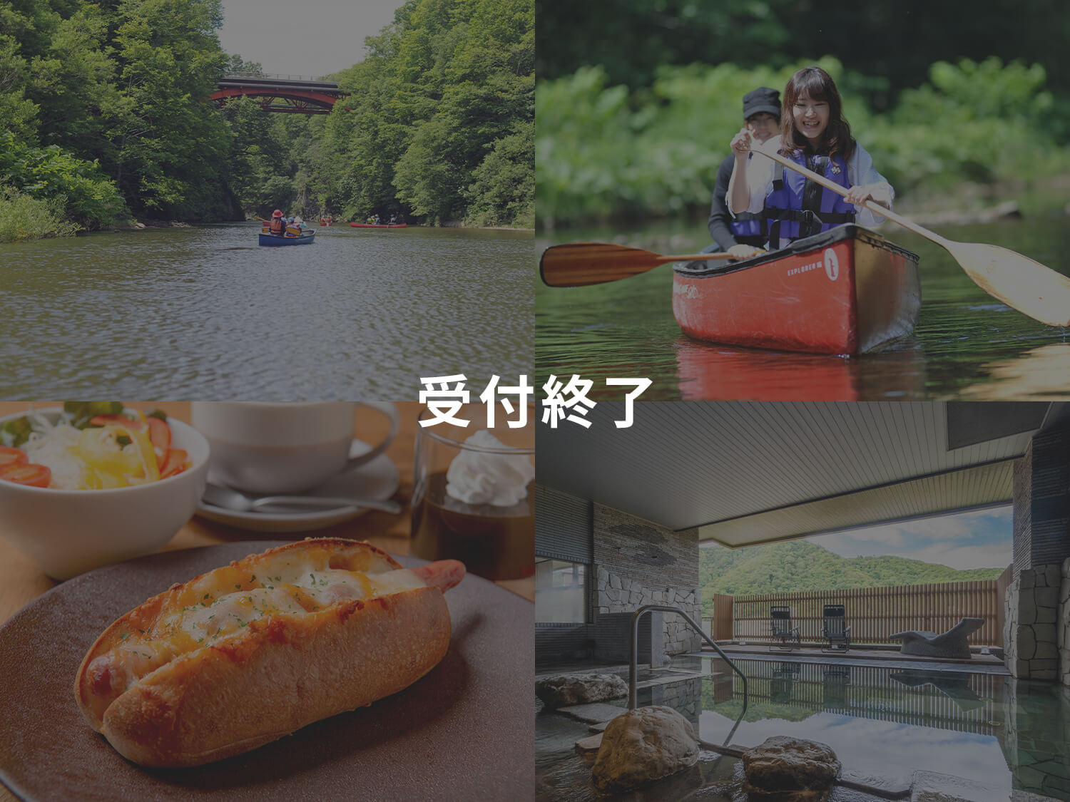 定山渓温泉での渓谷カヌーと、定山渓万世閣ホテルミリオーネのカフェランチ&日帰り入浴がセットになった平日限定プランです。